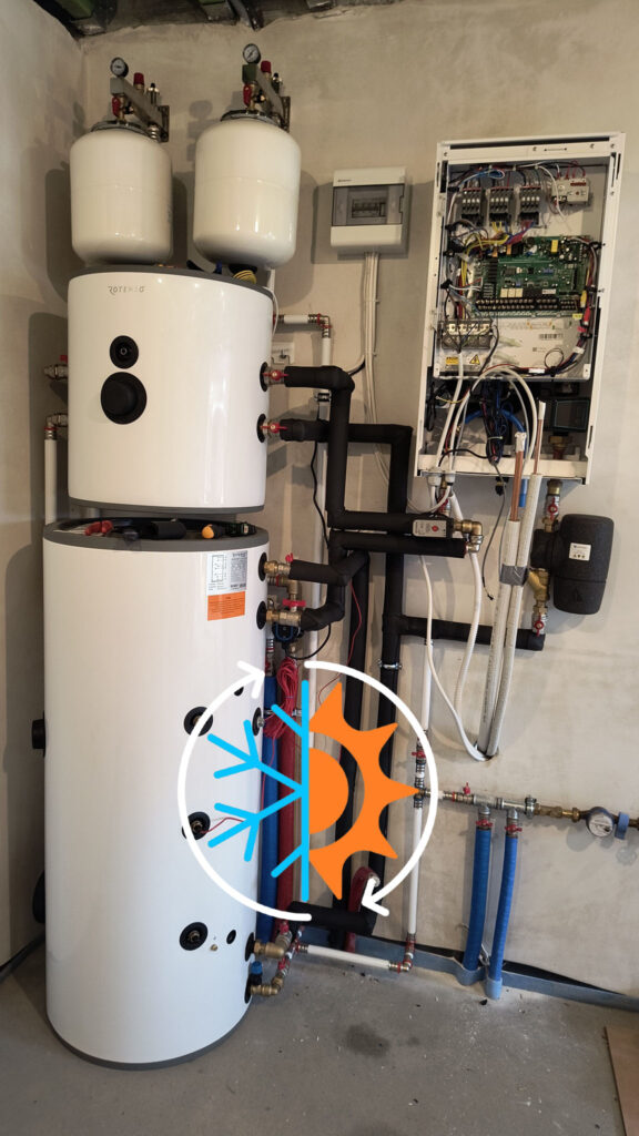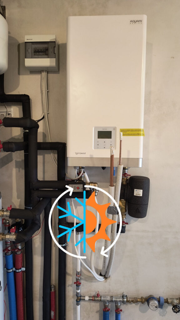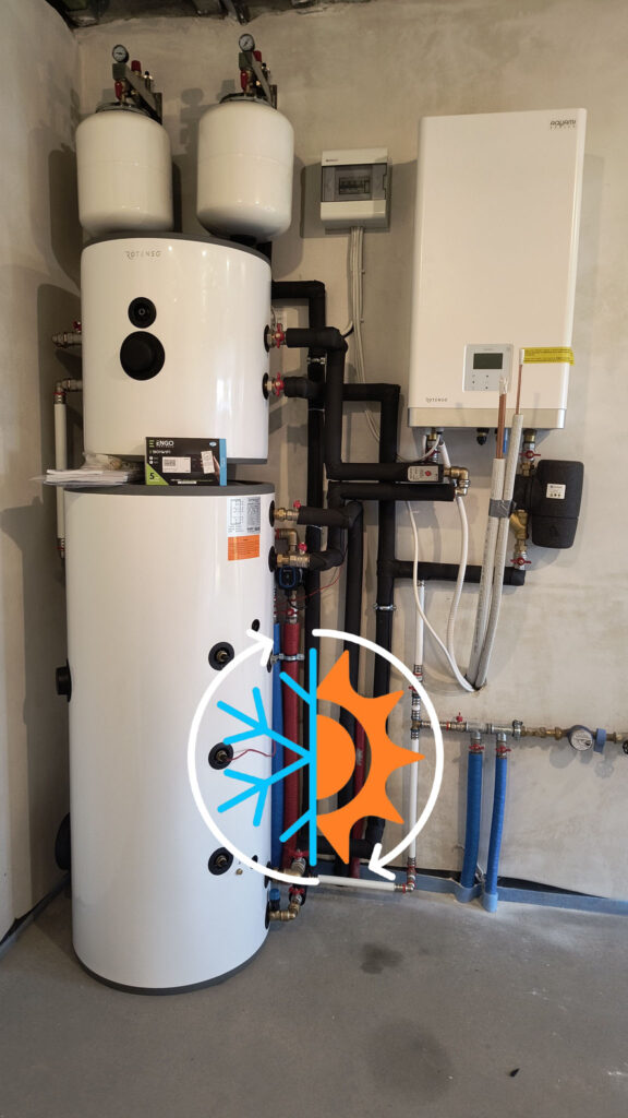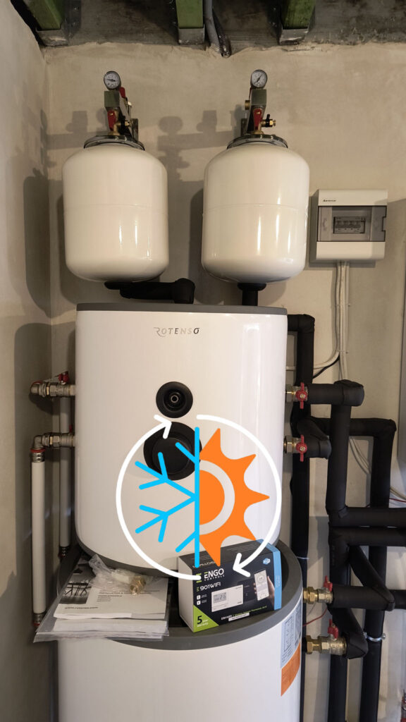 Drugi etap montażu ogrzewania w budynku jednorodzinnym w miejscowości Dębe. W garażu domu stanęła pompa ciepła Rotenso Aquami split o mocy 8kw wraz z dodatkowym zasobnikiem cwu i buforem ciepła. Pompa ciepła służy tutaj do ogrzewania wody użytkowej oraz instalacji ogrzewania podłogowego na dwóch piętrach domu. Sterowanie pompą jest możliwe za pomocą dedykowanej aplikacji ponieważ pompa łączy się bezprzewodowo z wifi. Montowane przez nas pompy Rotenso objęte są gwarancją na 5 lat.